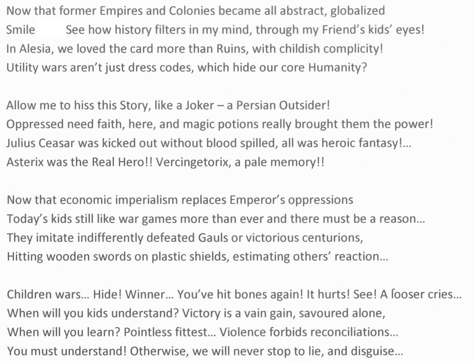 ET goes back crossing the moon - on his last trajectory An encounter with the 3rd kind - mon Petit pierrot mon ami The TRUTH was hidden years ago - the war we fight for in a tune